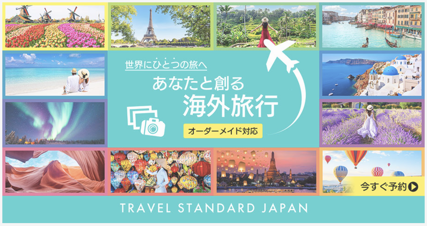 トラベル・スタンダード・ジャパンは、東京・渋谷に本社を構える旅行会社で、海外旅行や航空券、ホテルの手配を得意としています。特に「格安航空券+ホテル」のパッケージや、自由度の高いオーダーメイド型のツアーに強みがあります。