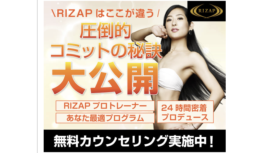 RIZAP(ライザップ)は、「結果にコミットする。」というキャッチコピーでおなじみのパーソナルトレーニングジム