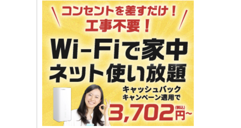 - 工事不要で即日使える:コンセントに挿すだけでインターネットがすぐ利用可能。