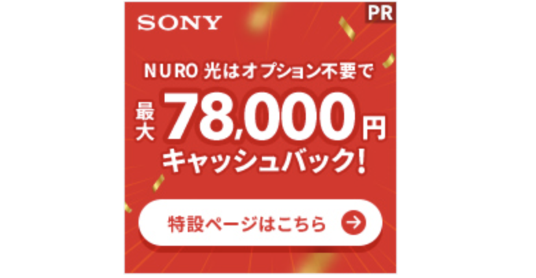 NURO 光では、公式または代理店経由で以下のような特典が用意されています。